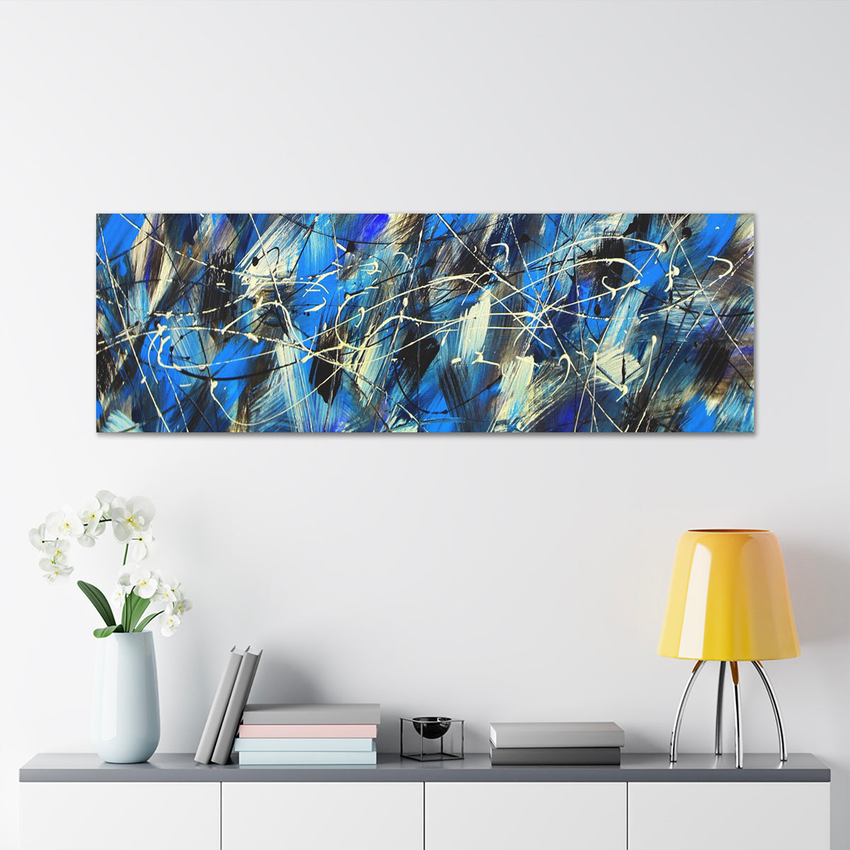 Elevate your space with this modern abstract canvas art, inspired by Jackson Pollock’s drip painting technique. Featuring a striking blue color palette, this high-quality print adds a sophisticated and artistic touch to your living room, home office, or bedroom. Printed on premium stretched canvas, it offers a gallery-style look that complements contemporary and minimalist décor. A perfect statement piece for art lovers and interior design enthusiasts..