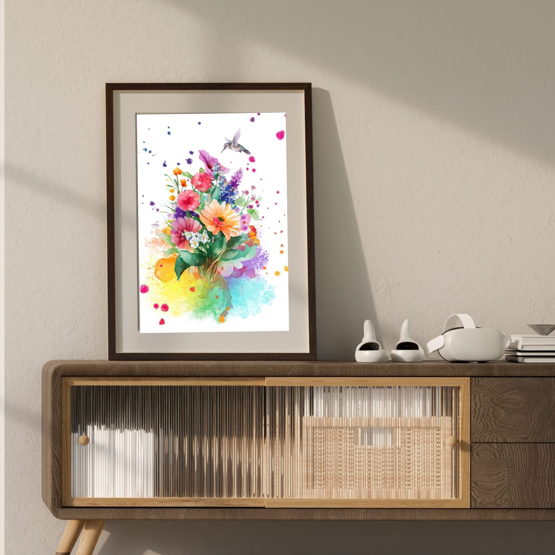 Hummingbird Art with Flowers