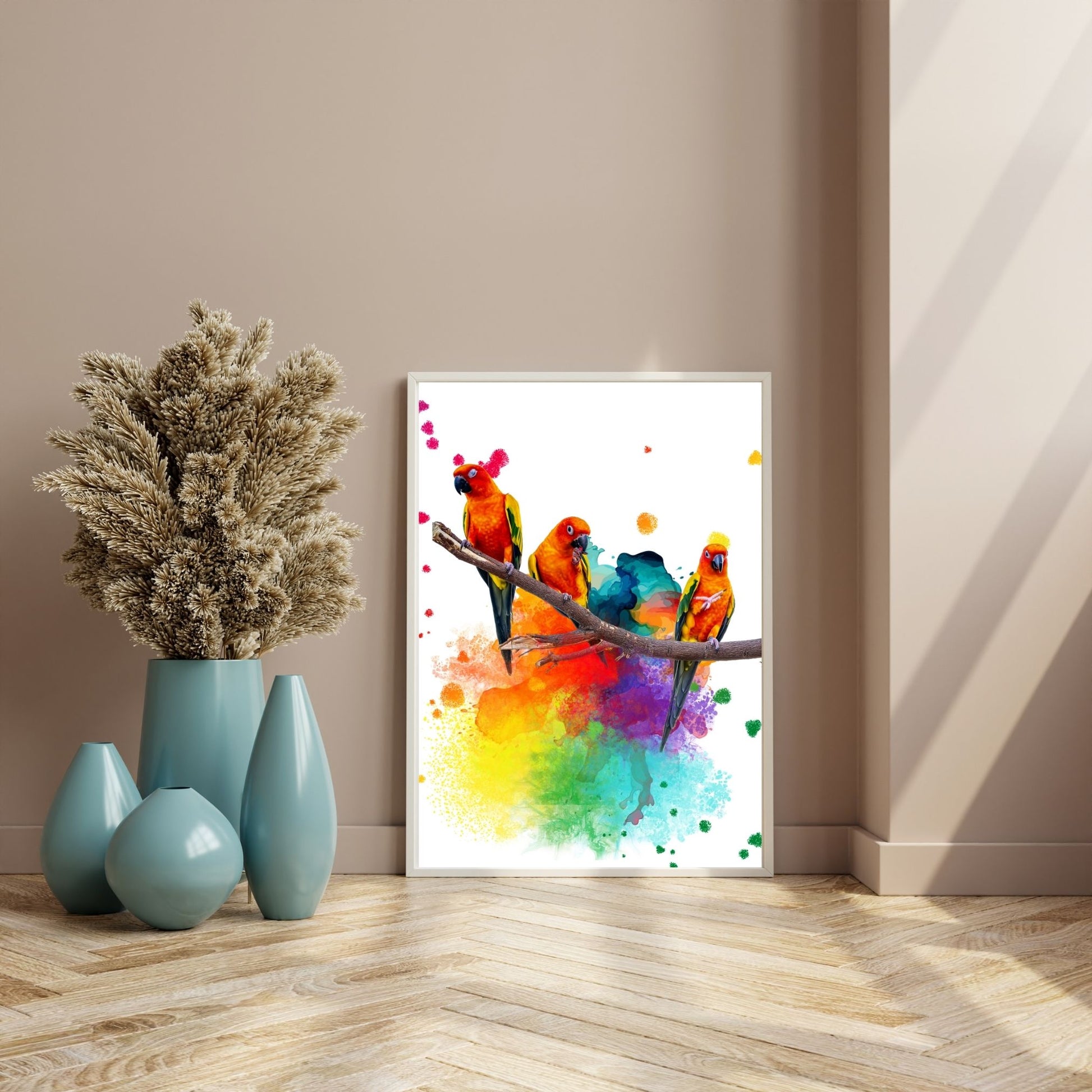Celebrate the vibrant beauty of tropical wildlife with this unique Parakeet Quintet collage art. Featuring a group of colorful parrot birds in a dynamic composition, this artwork is perfect for nature and bird enthusiasts. Ideal for adding a tropical vibe to your living room, bedroom, or office, this wildlife-inspired piece is a stunning addition to any decor. It also makes a thoughtful gift for parrot lovers and wildlife admirers.